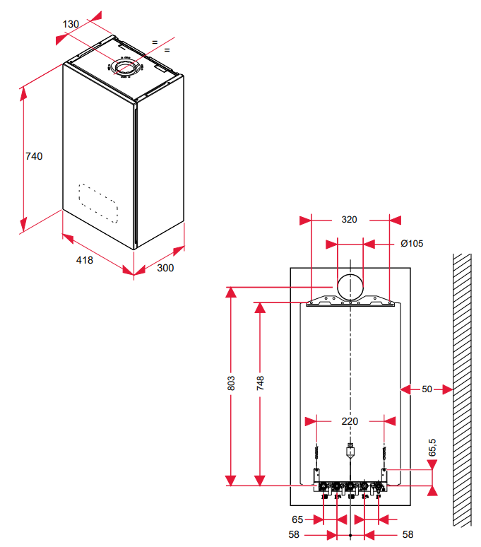 - Thermostaataansluiting: ON/OFF of eBUS, met optie voor OpenTherm®